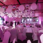 Hot Pink and Orange Sparkle Organza with Lights over Dance Floor