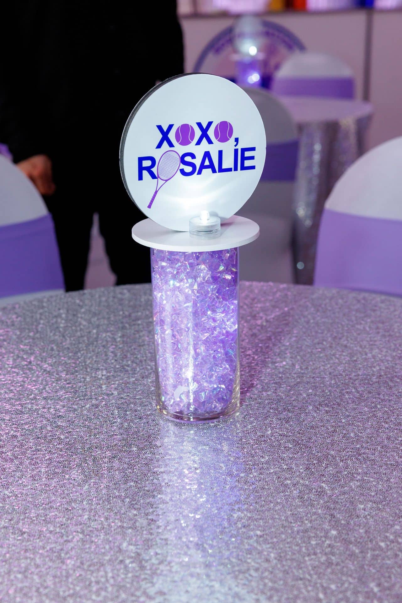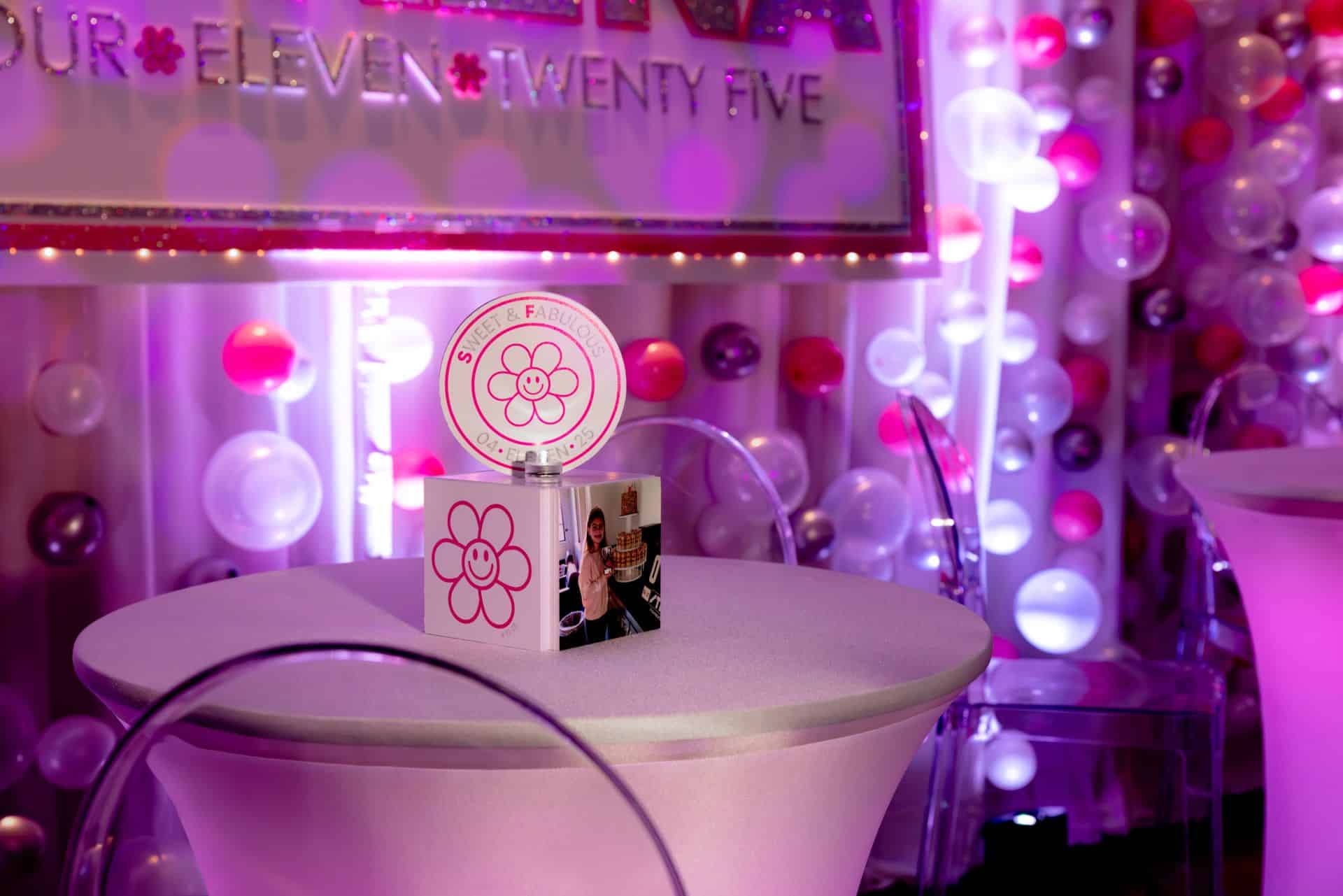 Our Hightop & Lounge Centerpieces are a great addition to any lounge setup or club style event. They are scaled to fit on a smaller sized table and can be decorated with photos, themes, custom logos & more!