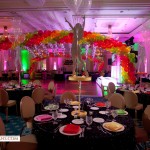Hot Pink Bat Mitzvah Room with White and Silver Ceiling Treatment at CSAIR Riverdale