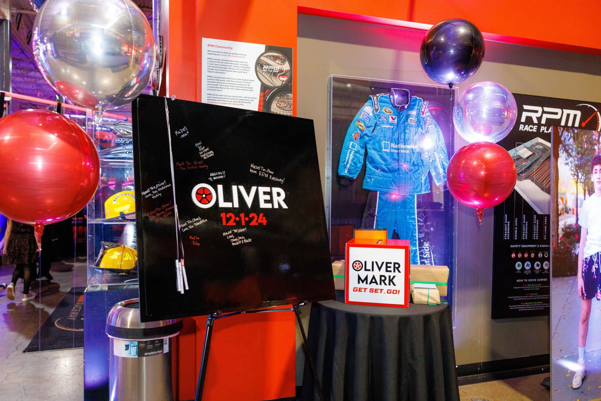 Sign In Board with Custom Logo for a Race Car Theme Bar Mitzvah